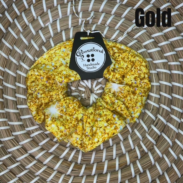 Our sewsational scrunchies are now available and ready to ship or pick-up. We currently have more then ten (10) designs to choose from. They have all been made with a mix of high quality swim and sports performance fabrics and soft cotton lycras making them a beautiful hair accessory. Our newest glitter range are all made with Cotton Lycra.